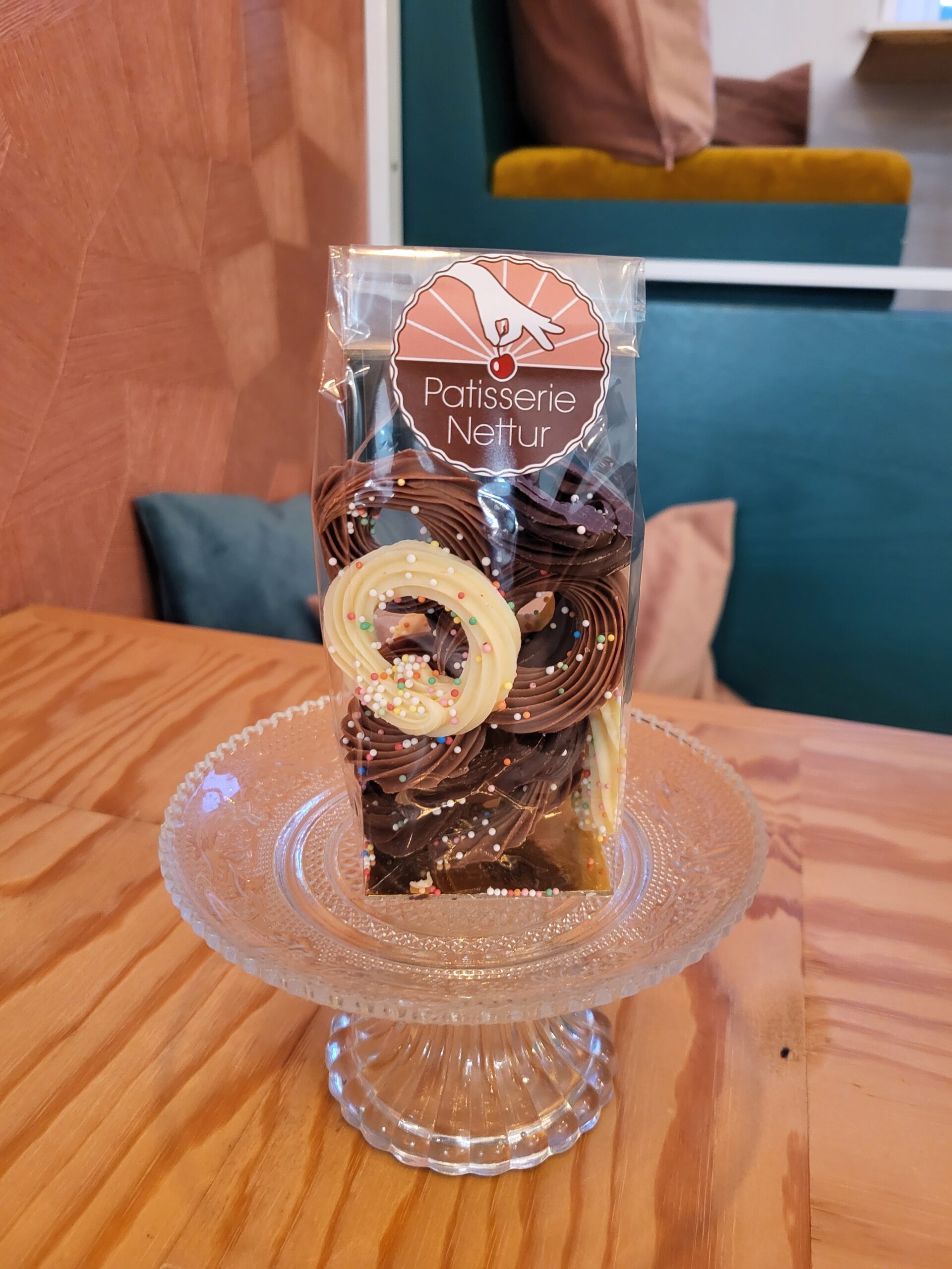 Chocolade kerstkransjes, handgemaakt en een mix van pure, melk, witte. Gedecoreerd met musketzaad.