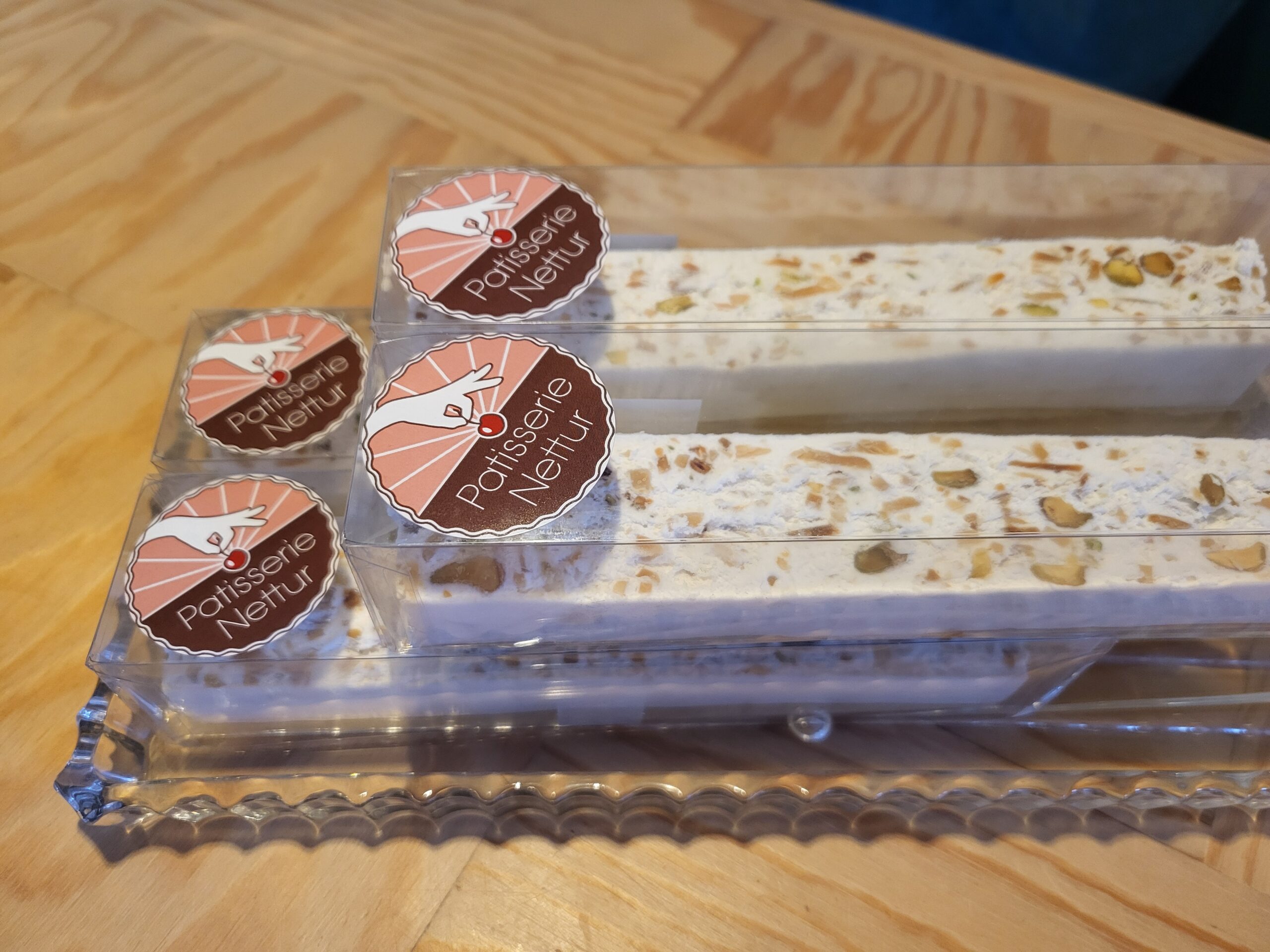 Heerlijke zachte nougat, met amandelen, pistache en een vleugje gekonfijte sinaasappel (niet bitter). Perfect voor bij de koffie / thee voor jouw visite. Deze zoetigheid blijft je bij.