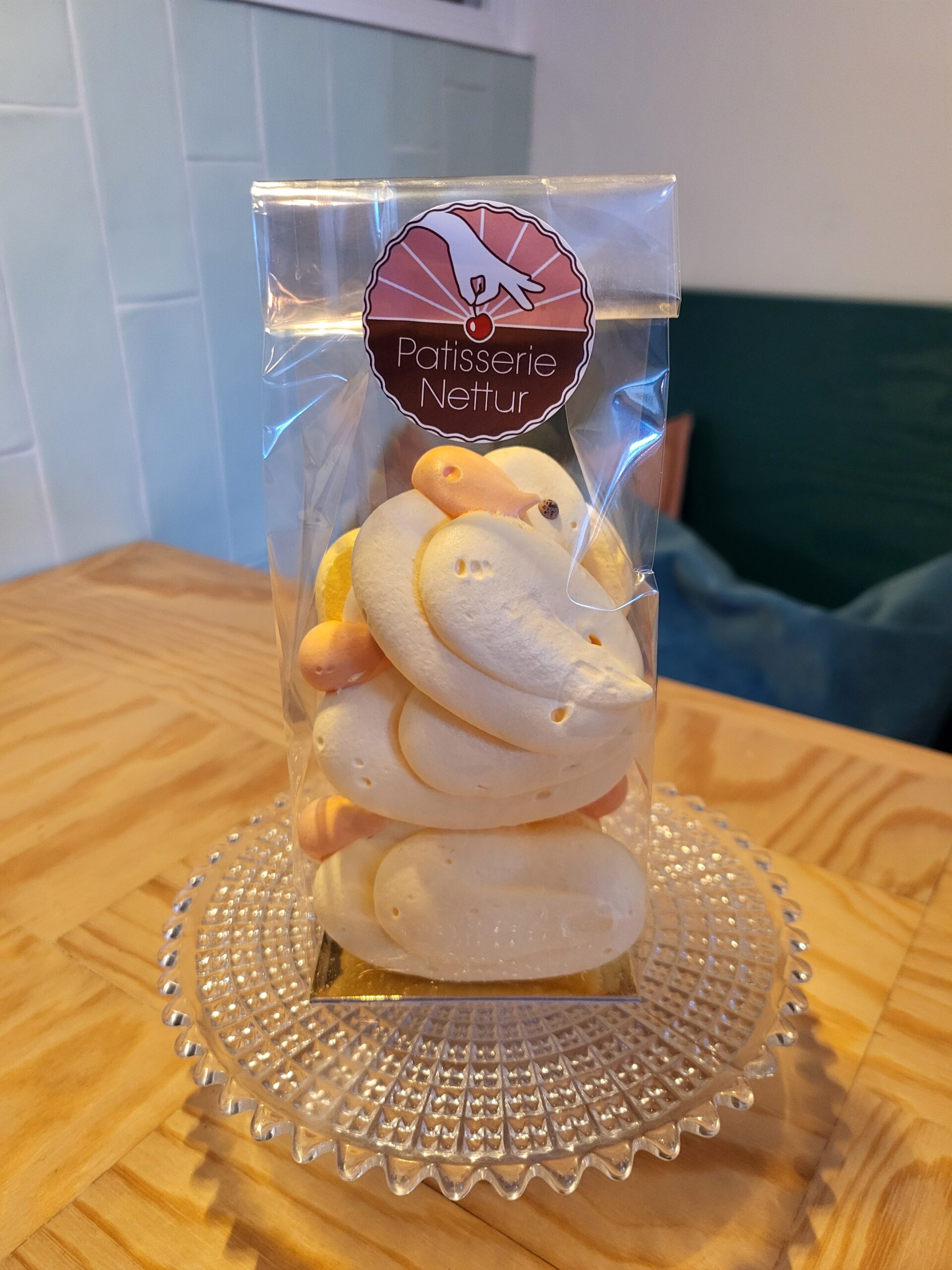 Lenteschuim in de vorm van een kuiken. Krokant van buiten en nog heerlijk zacht van binnen.