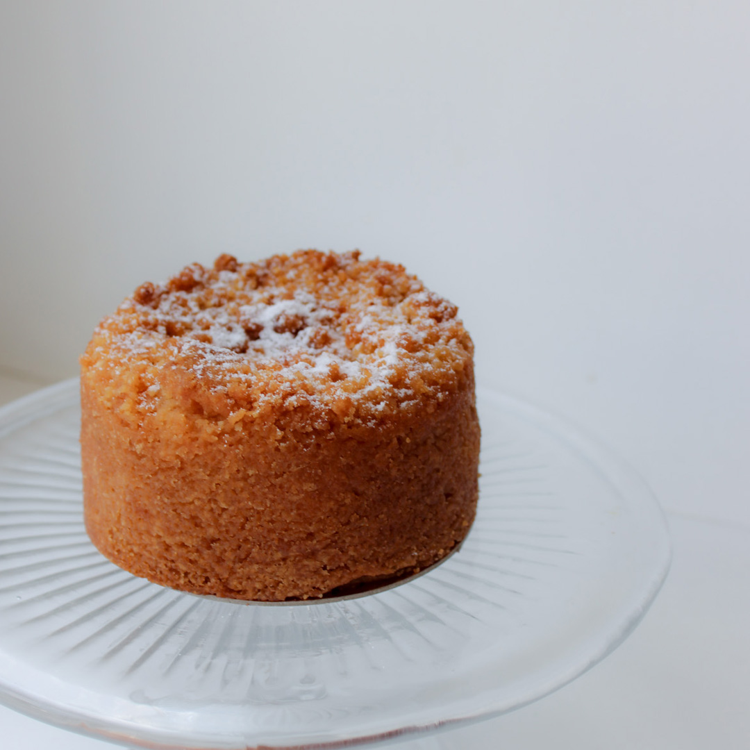 Eenpersoons appel kruimel gebakje, gevuld met heerlijke fris zoete appels van de lokale groenteboer, stevige roomboter bodem en krokante crumble topping.