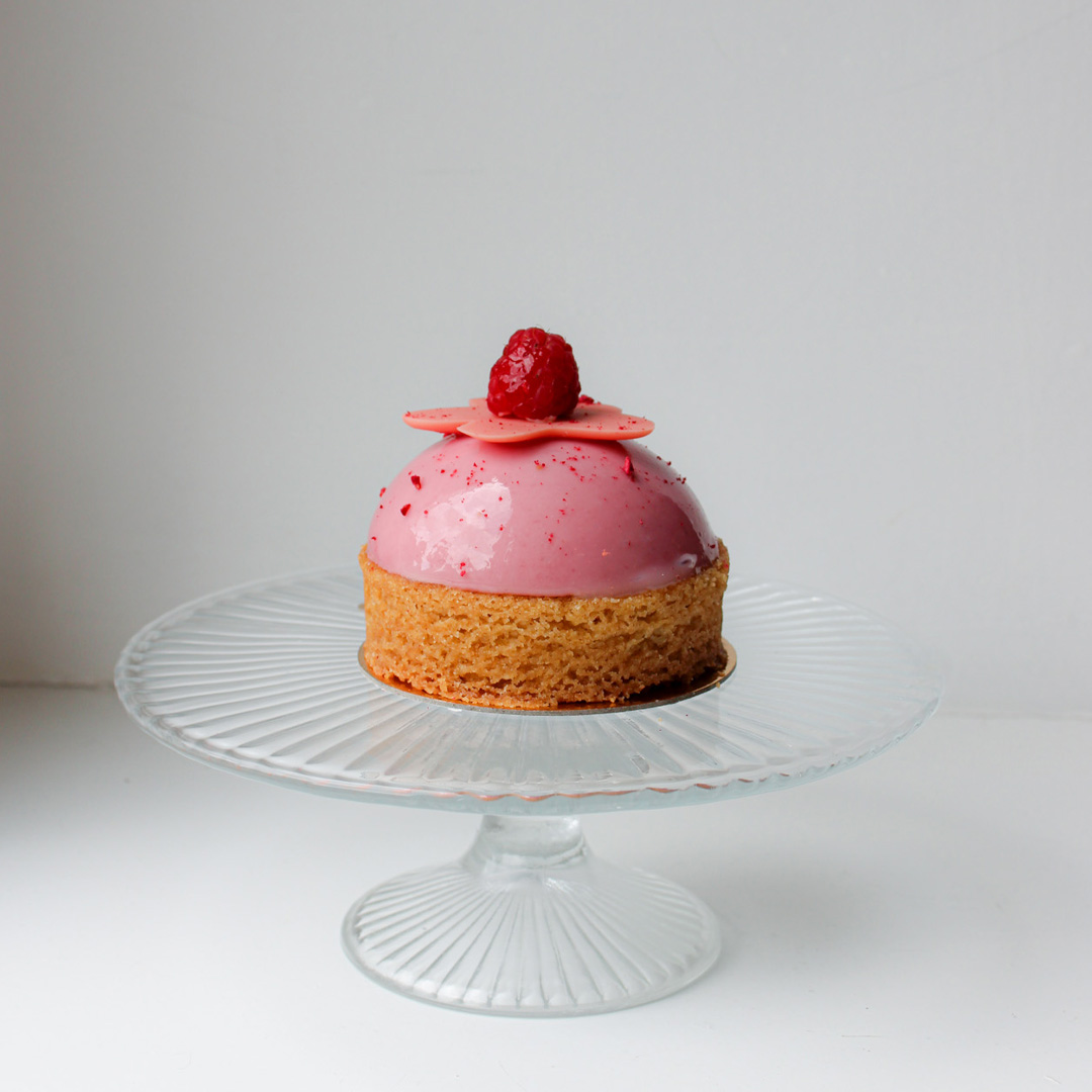 Dit gebakje bestaat uit een sloffenbodem (gevuld met banketbakkersroom en amandelspijs). Bovenop een heerlijk luchtige frambozenmousse en een kern van citroen cremeux. Een fruitige combinatie van fris en zoet!